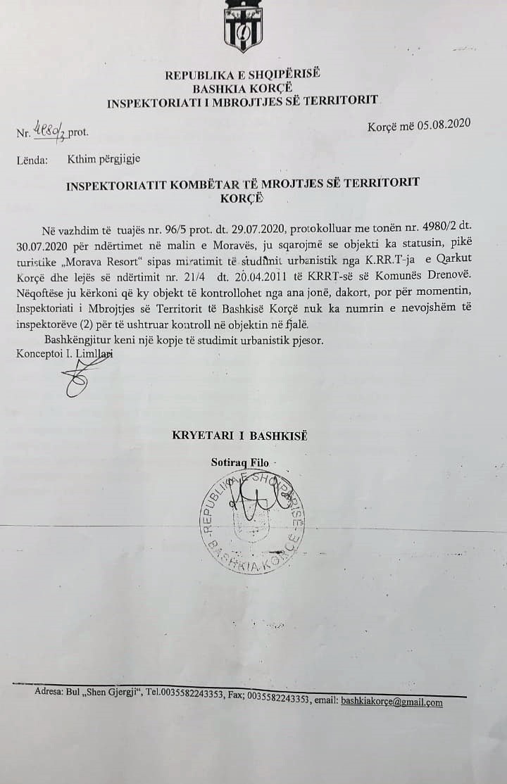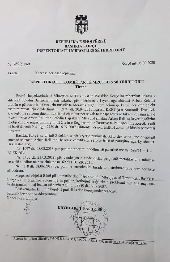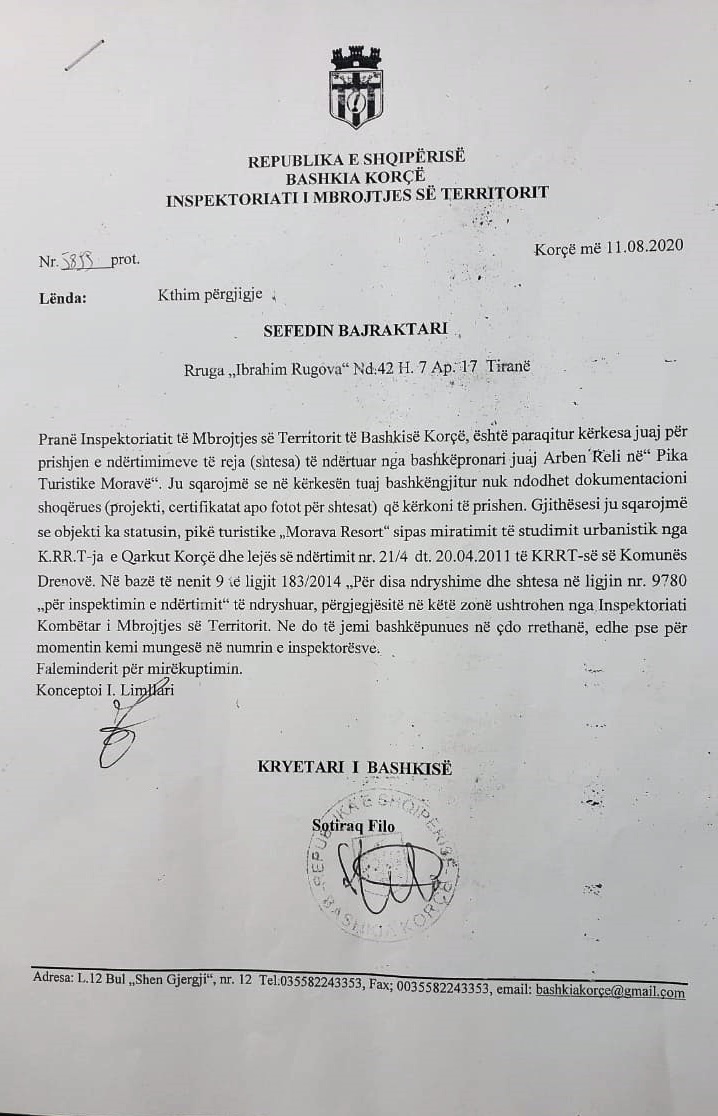 Madje, zona është turistike dhe duhen “forca” nga Tirana. Ai ka kërkuar ndihmën e Bicit, duke i kërkuar që të ndërhyjë. Por, Bici ka larë duart duke i kthyer përgjigje “se mungesa e një inspektori nuk ju ndalon të veproni”. Po përse Bici shkon dhe prish shtëpi në Lin, në Pogradec, madje edhe në Korçë, dhe nuk shikon nga Mali i Moravës.