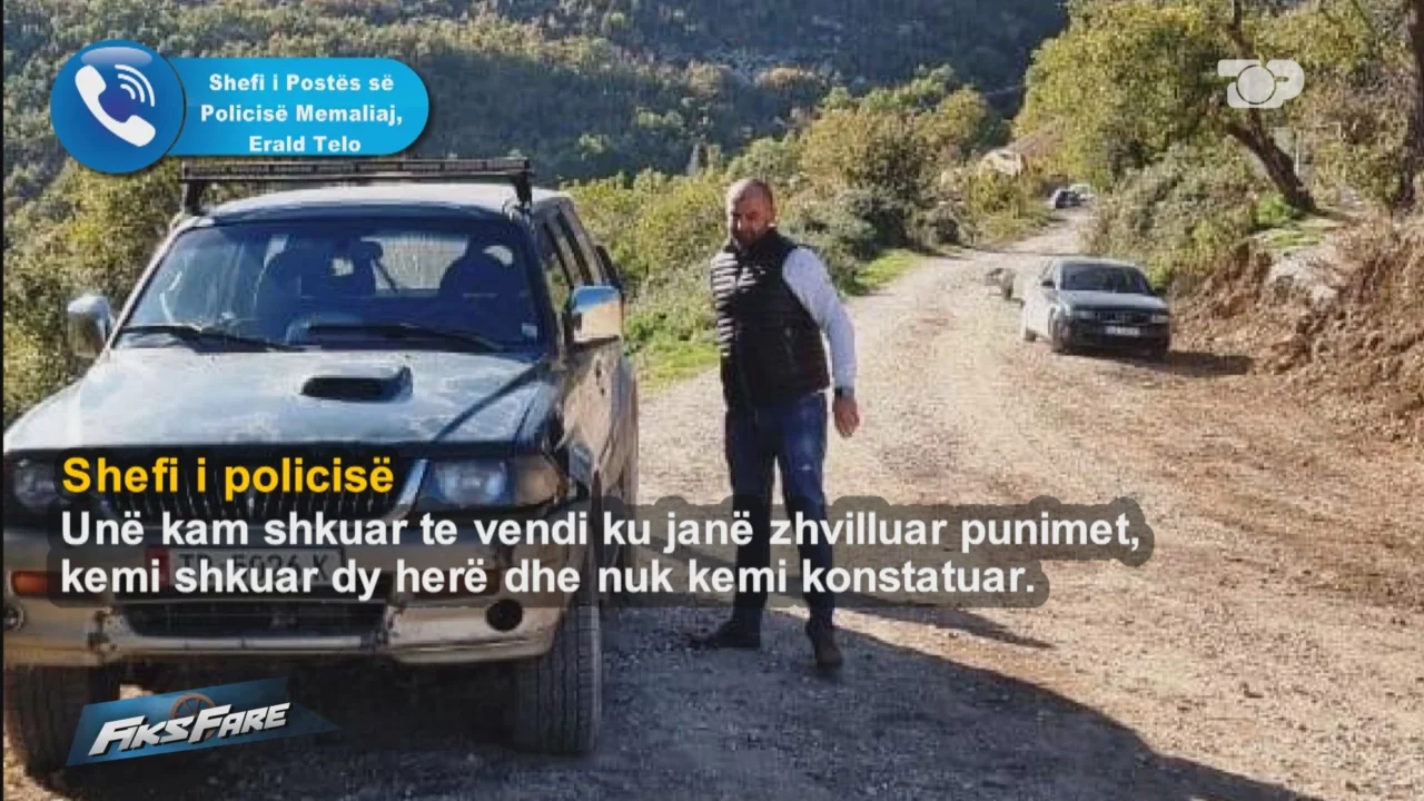 Grupi i emisionit Fiks Fare shkoi edhe në postën e Policisë në Memaliaj, ku kërkojnë shefin Erald Telo, i cili ka qenë prezent kur janë bërë punimet. Punonjësit e tjerë të policisë thanë se shefi nuk është në Memaliaj, por në Tiranë. Shefi thotë se e ka lajmëruar Njësia Administrative dhe kanë shkuar për të shuar konfliktin. Gazetarët i kërkojmë informacion se në atë vend është prishur varreza, teksa ai përgjigjet se “s’ka pasur të tillë”. Por, kur i bëjnë me dije se janë gjetur eshtra, madje edhe në sipërfaqe, pohon se “kam shkuar dy herë dhe s’kam gjetur”. Në fund thotë se do të dërgoj një grup për ta verifikuar.