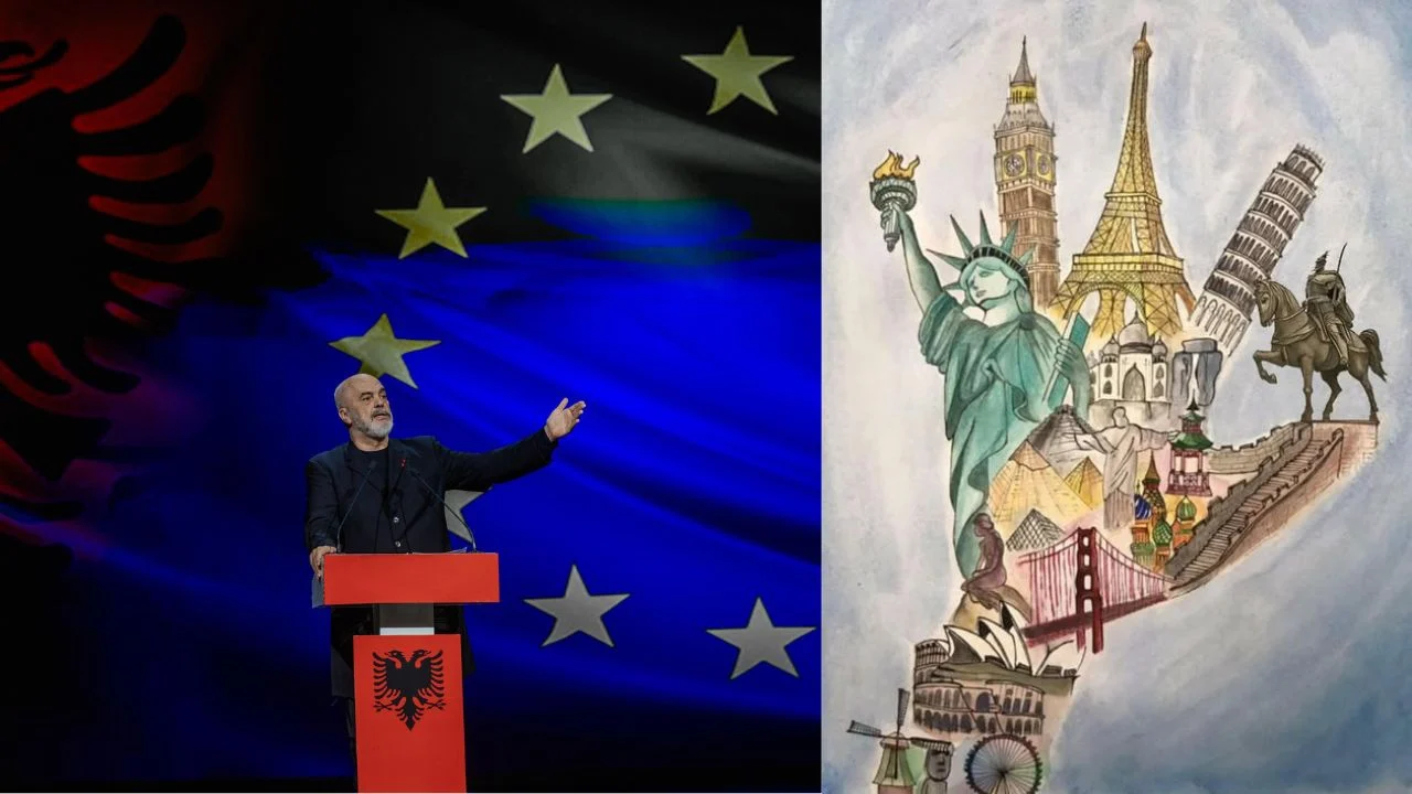 Kryeministri Edi Rama ka publikuar në rrjetin social “Facebook” një karikaturë me simbole të Bashkimit Europian, ku ka përfshirë edhe figurën e Skënderbeut, duke e lidhur me aspiratën e Shqipërisë për t’u bërë pjesë e familjes europiane.