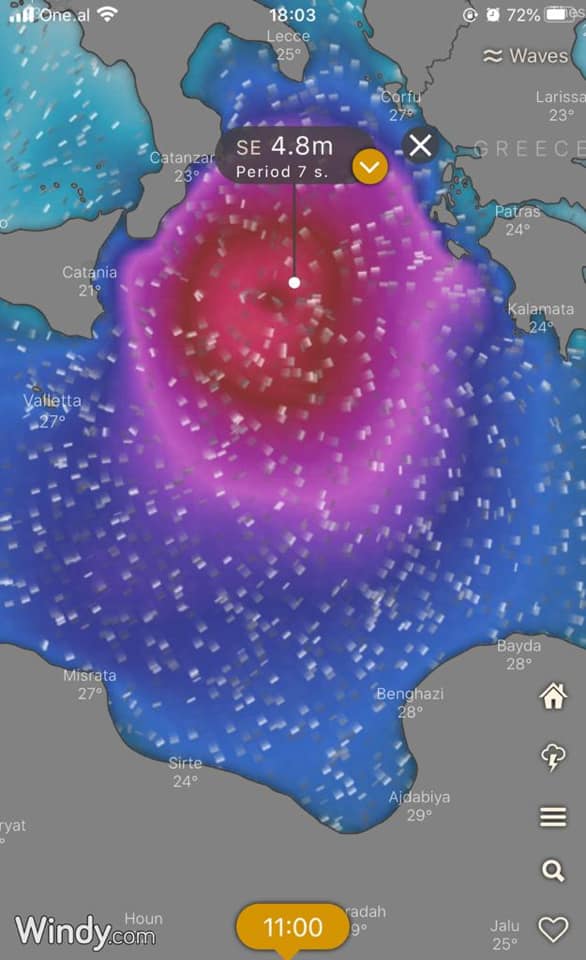 Njoftohet se moti të përkeqësuar do të ketë në jug të Italisë do të vazhdojë në drejtim të lindjes më konkretisht në zonën e Greqisë.