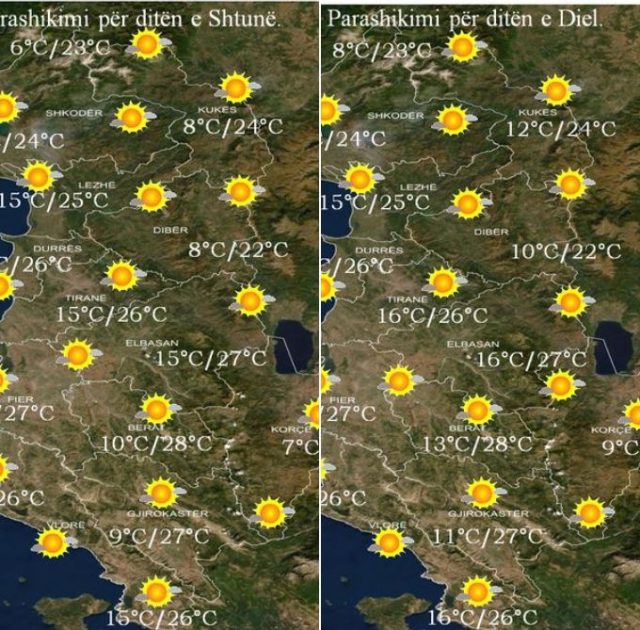 Sipas SHMU moti parashikohet i kthjellët në pjesën më të madhe të territorit por nuk do të mungojnë alternimet e vranësirave kalimtare kryesisht në orët e mesditës.