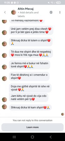 Dua të theksoj qartë se nga ana ime nuk ka pasur asnjë përgjigje ndaj këtyre mesazheve. Nuk kam komunikuar dhe nuk kam pasur mundësi t’i kthej as përgjigjen e merituar, pasi Facebook nuk më lejonte t’i shkruaja, çka e bën edhe më të qartë faktin se komunikimi ka qenë i njëanshëm dhe i padëshiruar. Këto sjellje më kanë shkaktuar shqetësime serioze emocionale dhe familjare, si për mua, ashtu edhe për familjen time.