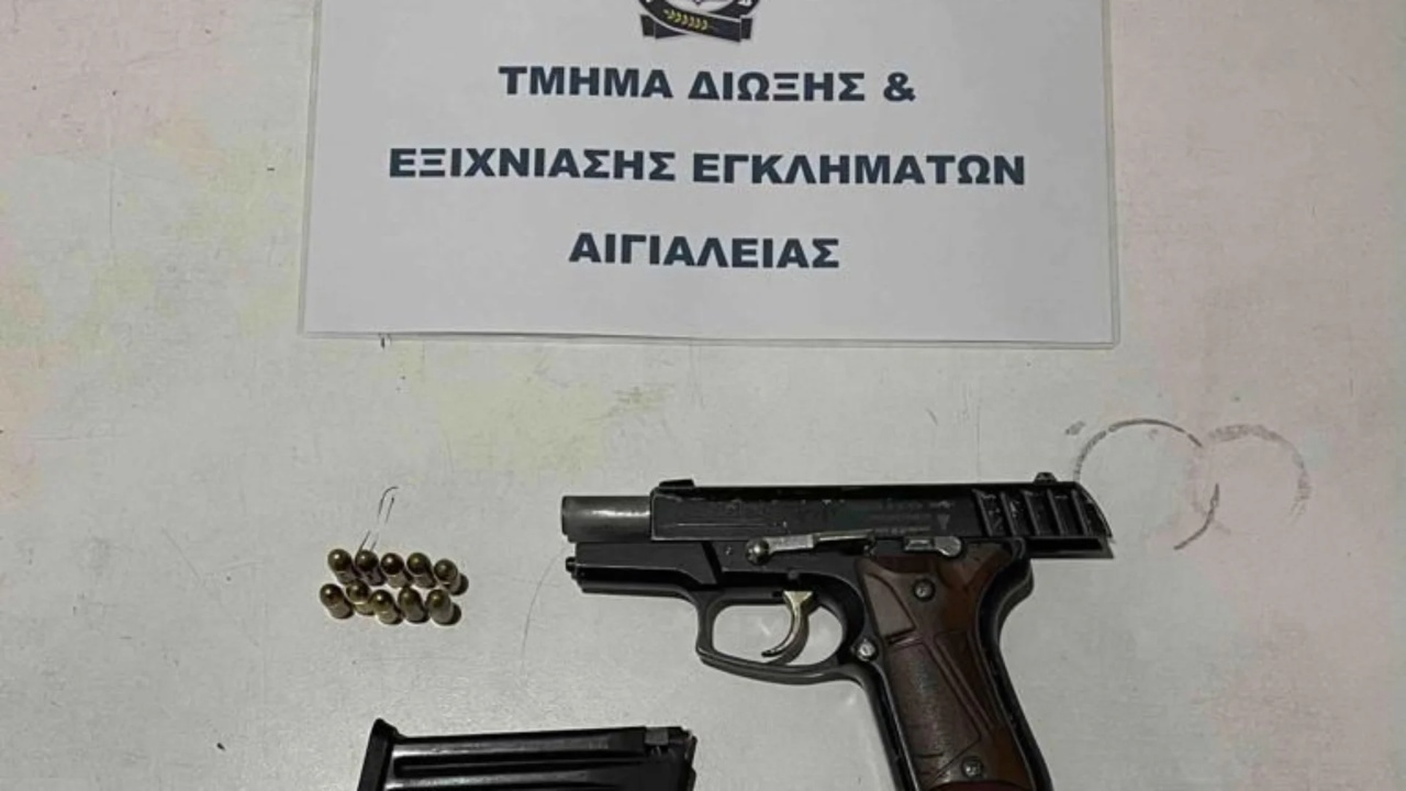 36-vjeçari me banim në Pire u arrestua në tentativë për të vjedhur një shtëpi në Longos. Gjatë kontrollit në kopshtin e shtëpisë, policia gjeti një pistoletë të mbushur, të cilën autori e kishte fshehur në një kondicioner të jashtëm përpara se të arrestohej.