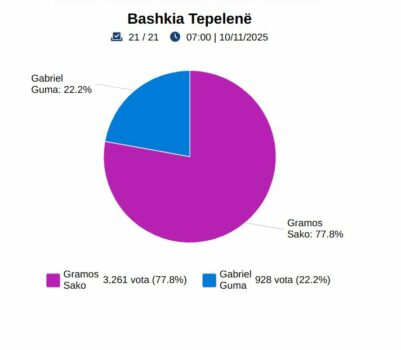 Ndërkohë kandidati Gabriel Guma siguroi 928 përqind të votave, pra 22.2% të tyre.