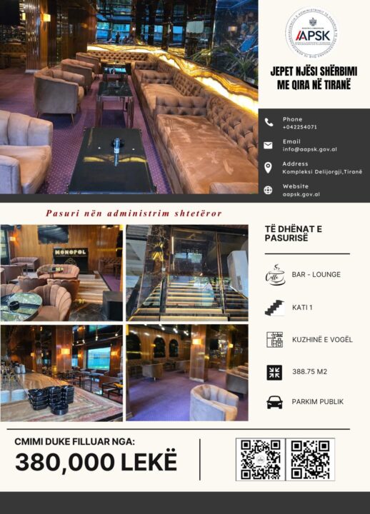 Gjendja: E investuar totalisht. Adresa:Rruga Myslym Shyri, Tiranë. Çmimi duke filluar nga: 380,000 Lekë/muaj