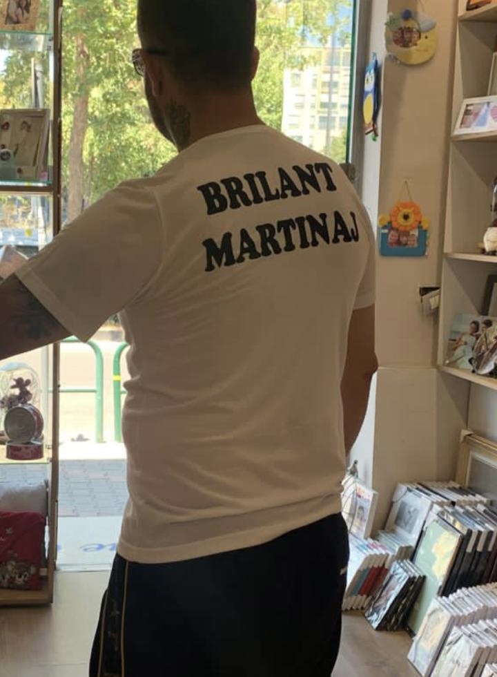 Por këtë herë, taksisti i ka dedikuar disa tatuazhe të riut të vrarë disa ditë më parë në atentatin e rëndë në Fushë-Krujë, Brilant Martinajt. Taksisti ka mbushur dorën deri në parakrah me emrin dhe inicialet e Martinajt, ndërsa ka pozuar po ashtu me bluza të stampuara me foton e të ndjerit Martinaj.