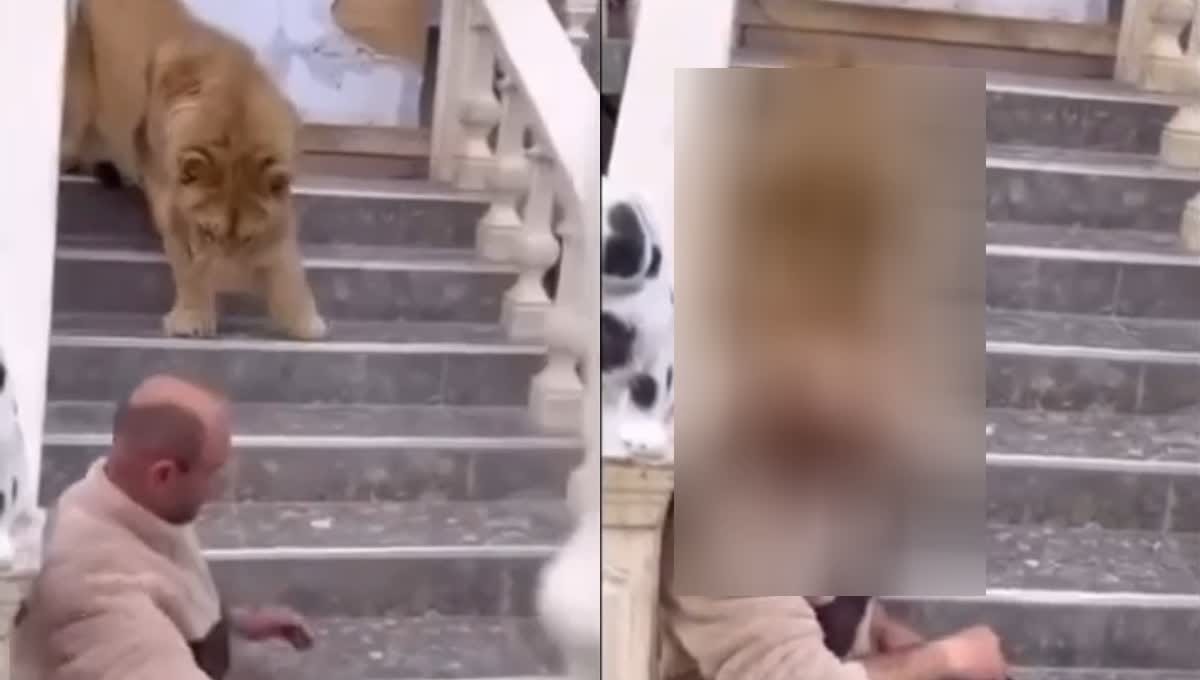 Siç shihet edhe në videon e mëposhtme, një burrë i është afruar një luani për ta përkëdhelur, ku dyshohet se do të bënte video për rrjetet sociale, por papritur luani i ka ngulur dhëmbët në pjesën e qafës dhe kokës.