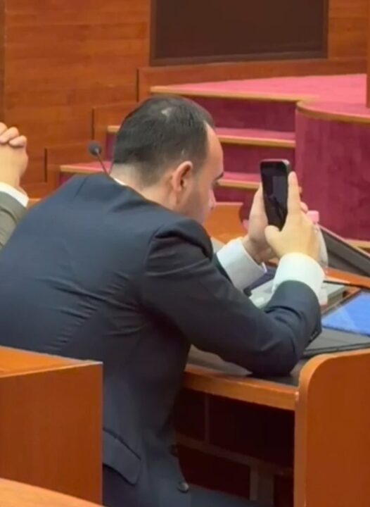 Deputeti Klevis Balliu duket se në Parlament bën edhe rolin e kameramanit personal të Sali Berishës.