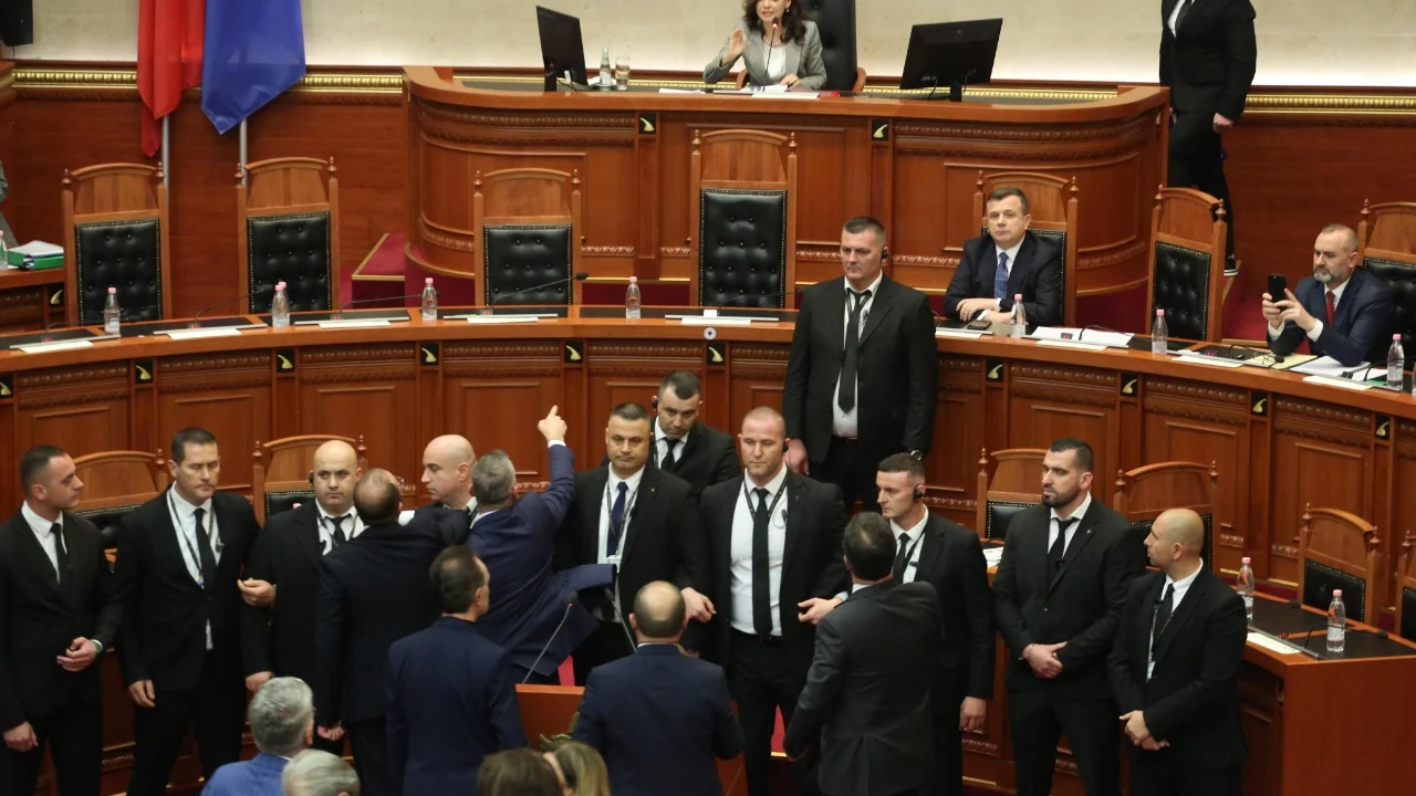 Mes tensioneve të shumta në Kuvend dhe teksa Garda kishte rrethuar foltoren për shkak të kaosit që krijuan deputetët e opozitës, deputeti Doda duket teksa përplaset me punonjësit.