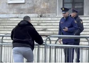 Në këtë situatë, një prej protestuesve është përplasur me gardhin metalik të vendosur përreth godinës, duke shkaktuar momente tensioni me efektivët e rendit.