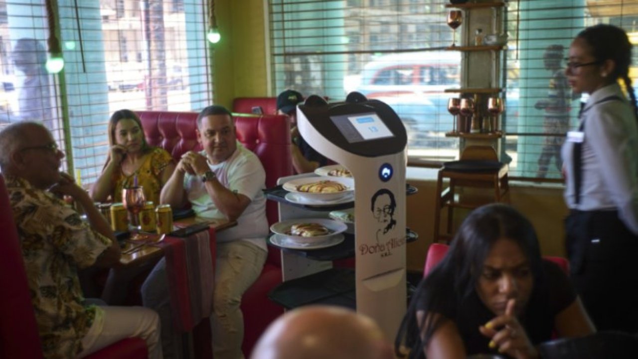 Roboti lëviz mes tavolinave dhe shpërndan porositë pa komunikim verbal, duke sjellë një mënyrë të re shërbimi në zonat turistike. Kafeneja ndodhet në një nga qytetet bregdetare dhe kjo është hera e parë që përdor një robot për të ndihmuar në shërbim.