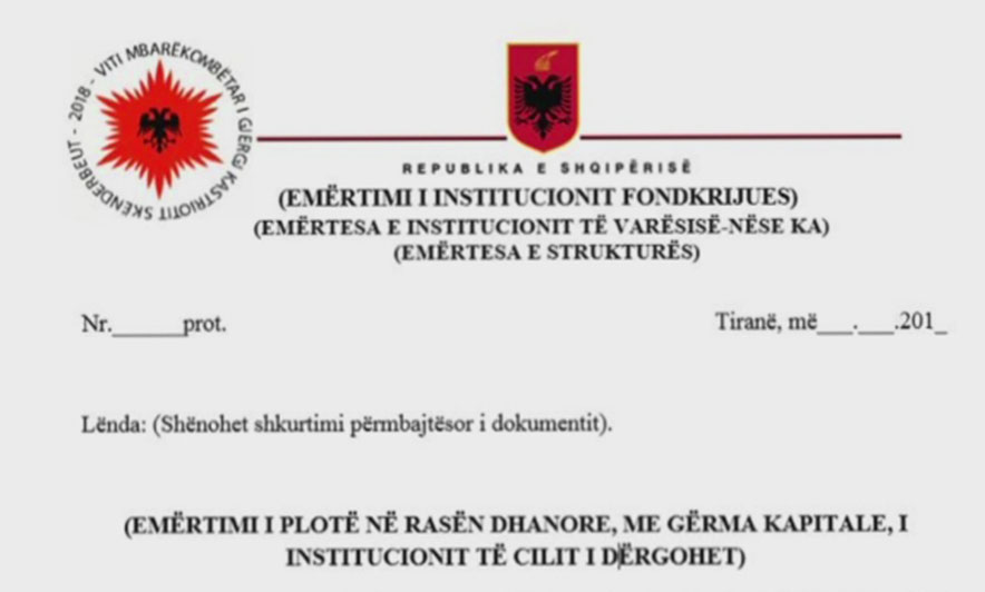Nga 1 janari, logoja e Gjergj Kastriot Skënderbeut printohet në të gjitha dokumentet shtetërore dhe do të vijojë gjatë të gjithë vitit, deri më 31 dhjetor 2018.