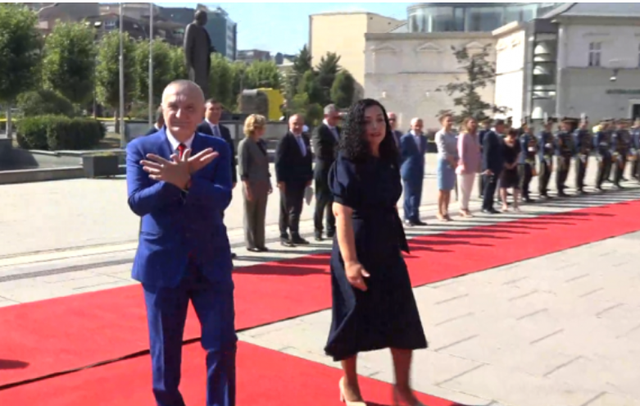 Presidenti Ilir Meta mëngjesin e sotëm është pritur me ceremoni shtetërore nga presidentja e Kosovës, Vjosa Osmani në Prishtinë, në vizitën e tij të fundit zyrtare si president.