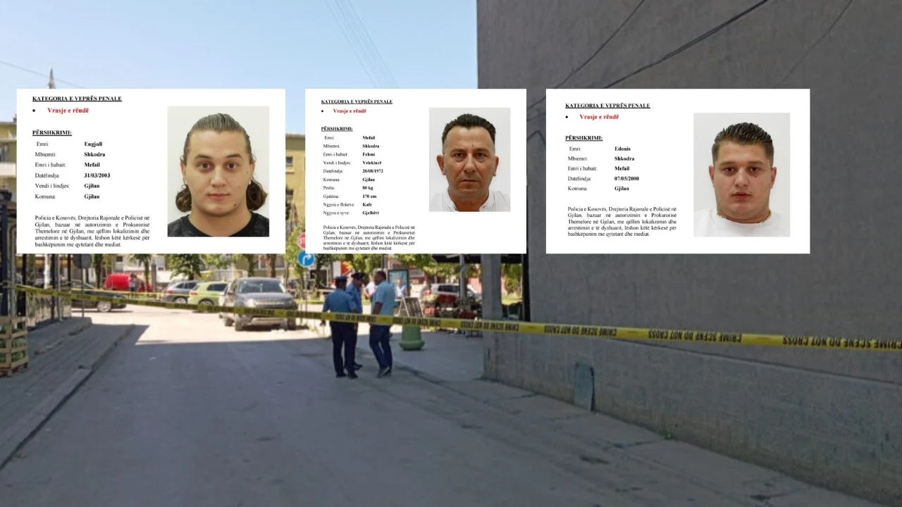 Policia e Kosovës shpalli në kërkim edhe djemtë e Mefail Shkodrës për vrasjen e trefishtë që tronditi sot në mesditë Gjilanin.
