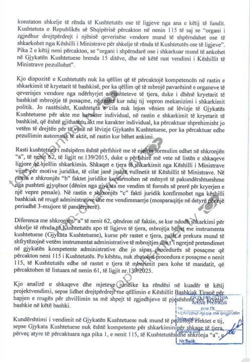 Në dokumentet që Këshillimi i Ministrave ka dërguar në Kushtetuese përfshihen propozimi i Këshillit Bashkiak për shkarkimin e Veliajt apo dokumenti që Prefekti i Tiranës i ka dërguar Këshillit të Ministrave për propozimin për shkarkim.