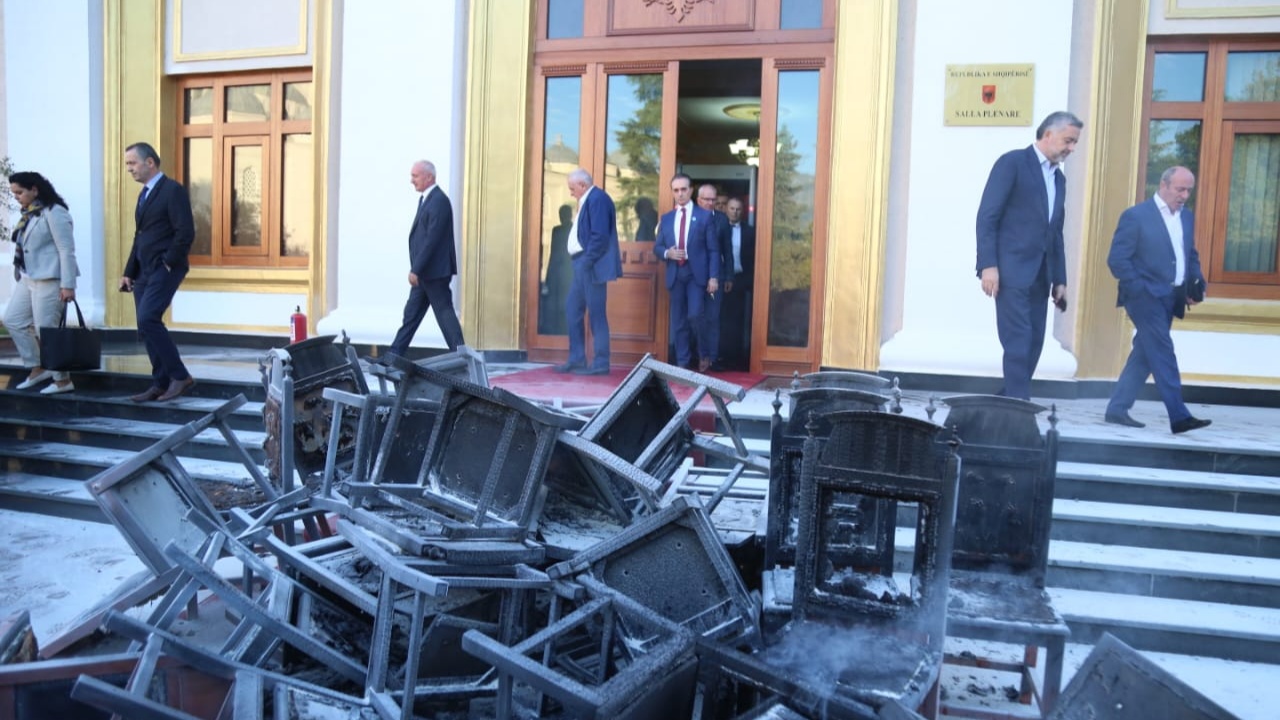 Për shkak të tensioneve në sallë dhe vendimit të kryeparlamentares Elisa Spiropali për ndërprerjen e mandatit të kolegut Ervin Salianji, sepse u dënua me 1 vit burg nga Gjykata e Apelit, deputetët demokratë morën karriget e tyre dhe i dogjën.