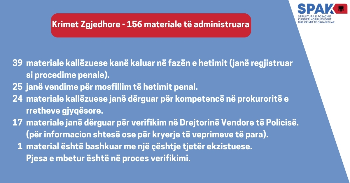 SPAK ka nisur hetimet për 39 raste të dyshuara si krime zgjedhore, të cilat janë regjistruar tashmë si procedime penale. Këto përfshijnë akuza të ndryshme që lidhen me shkelje gjatë fushatës dhe procesit të votimit.