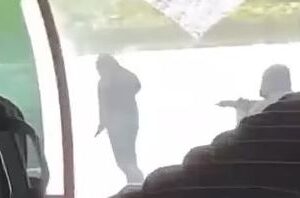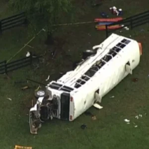 Disa pamje të autobusit tregojnë atë të shaktërruar në anët e tij dhe i rrethuar nga mbetje prej përplasjes.