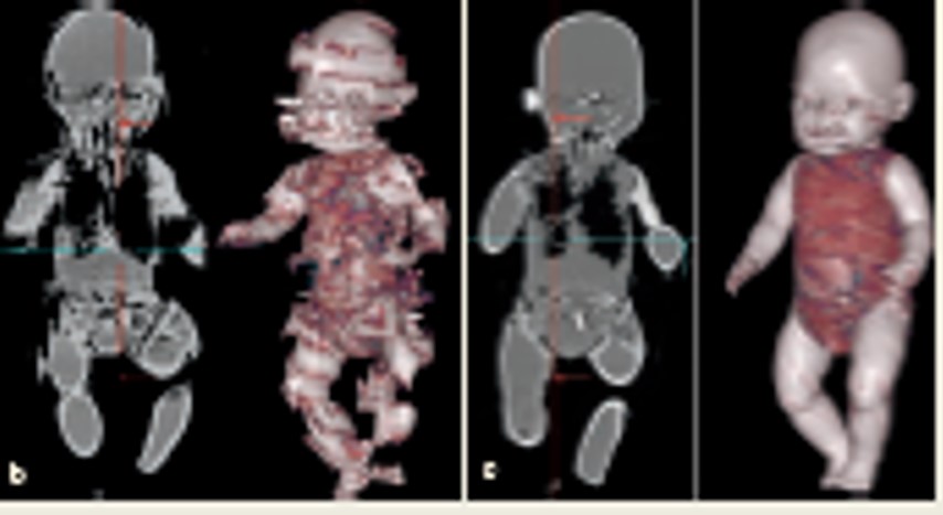 Përfitimi i mënyrës së skanimit Flash në CT pediatrike demonstrohet edhe në figurë, kur në rastin se pacienti i vogël lëziv, për arsye të moshës dhe mospërqëndrimit, cilësia e imazheve të CT skaner është shumë e qartë, krahasuar me modele të mëparshme, duke e bërë këtë pajisje ideale për pacientët e vegjël.
