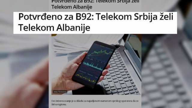 Telekom Srbija ka konfirmuar për herë të parë zyrtarisht se është në bisedime për të blerë operatorin e dytë më të madh të telefonisë së lëvizshme në Shqipëri, Telekom Albania. Në një prononcim për median serbe “b92”, Telekom Srbia zbulon se ka bërë ofertë por pa dhënë detaje të mëtejshme.