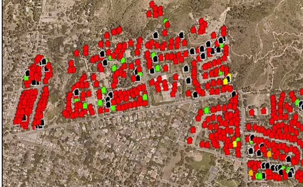 Një hartë interaktive është publikuar për të ndihmuar banorët të shohin dëmin dhe për të zbuluar cilat shtëpi janë shkatërruar dhe cilat janë “kursyer”. Ndërkohë, janë shkatërruar rreth 1,422 struktura, ndërsa 212 të tjera kanë pësuar dëme të rëndësishme. Shërbimi zjarrfikës ka paralajmëruar për rrezikun e materialeve të dëmshme në hiri dhe ka kërkuar kujdes të shtuar.