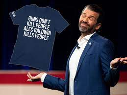 Mediat e huaja shkruajnë se djali i Trump nxori në shitje disa bluza në të cilat mbishkruhej “armët nuk vrasin njeri, Alec Baldwin e bën”. Në këtë mënyrë dukej se ai po tallej me aksidentin fatal të ndodhur pak ditë më parë gjatë xhirimeve të filmit më të ri “Rust”.