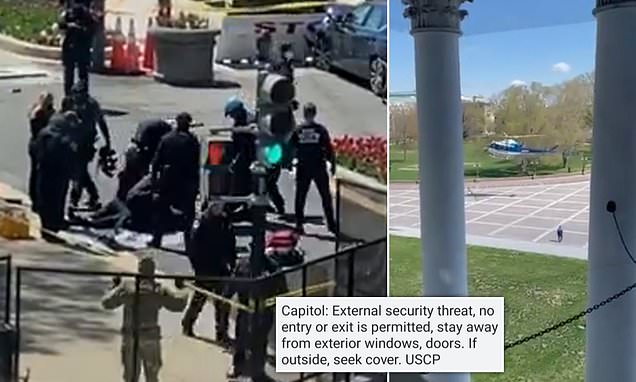 Kapitoli amerikan është mbyllur pasi një i dyshuar përplasi makinën e tij me një barrierë mbrojtëse, duke plagosur rëndë dy policë dhe më pas thuhet se doli me thikë para se të qëllohej.