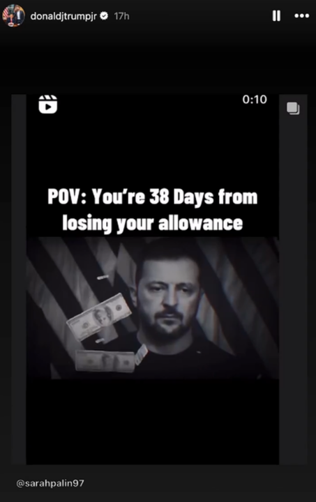 Donald Trump Jr. ka shpërndarë një video tallëse që paralajmëron presidentin ukrainas Volodymyr Zelensky për humbjen e “kompensimit të tij”, duke nënkuptuar se ai mund të humbasë mbështetjen e SHBA-ve pas rikthimit të babait të tij, Donald Trump, në Shtëpinë e Bardhë. Ky postim ka ngjallur shqetësime në Ukrainë, pasi mbështetja amerikane është një faktor kyç në luftën e vendit kundër pushtimit rus.