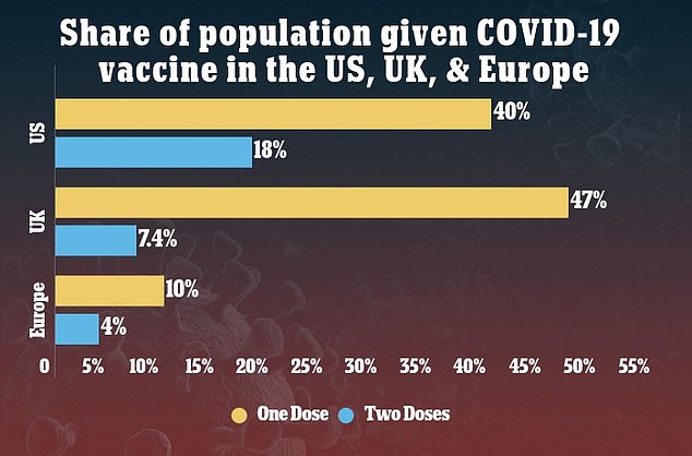 Të dhënat tregojnë se 10% e popullsisë në përgjithshme në Europë, rreth 75 milionë persona kanë marrë një dozë të vaksinës.