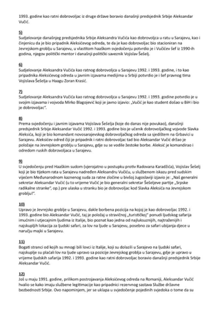 Gjithashtu përfshihen dëshmi të ish-zyrtarëve boshnjakë që – sipas gazetarit – e lidhin praninë e Vuçiçit me aktivitetet në atë vijë të frontit.