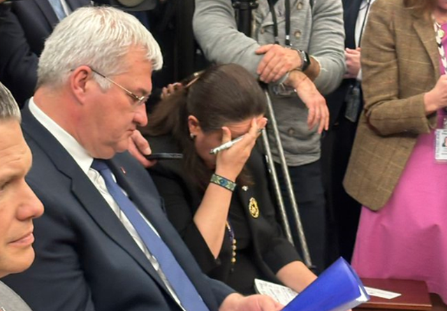 Ambasadorja e Ukrainës në SHBA, Oksana Markarova u fotografua sot duke mbajtur kokën në duar teksa ishte e pranishme në takimin e nxehtë mes Presidentit ukrainas Volodymyr Zelensky dhe Presidentit Donald Trump të premten.
