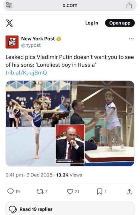 Sipas gazetës amerikane, fotot tregojnë Ivanin 10-vjeçar dhe Vladimir Juniorin 6-vjeçar duke u stërvitur për t’u bërë gjimnastë si nëna e tyre. Ivani madje dha një intervistë në të cilën foli për lëvizjet “e bukura” të gjimnastikës që mësoi nga kampionët olimpikë Alexei Nemov, Evgenia Kanaeva dhe Tagir Khaibulaev.