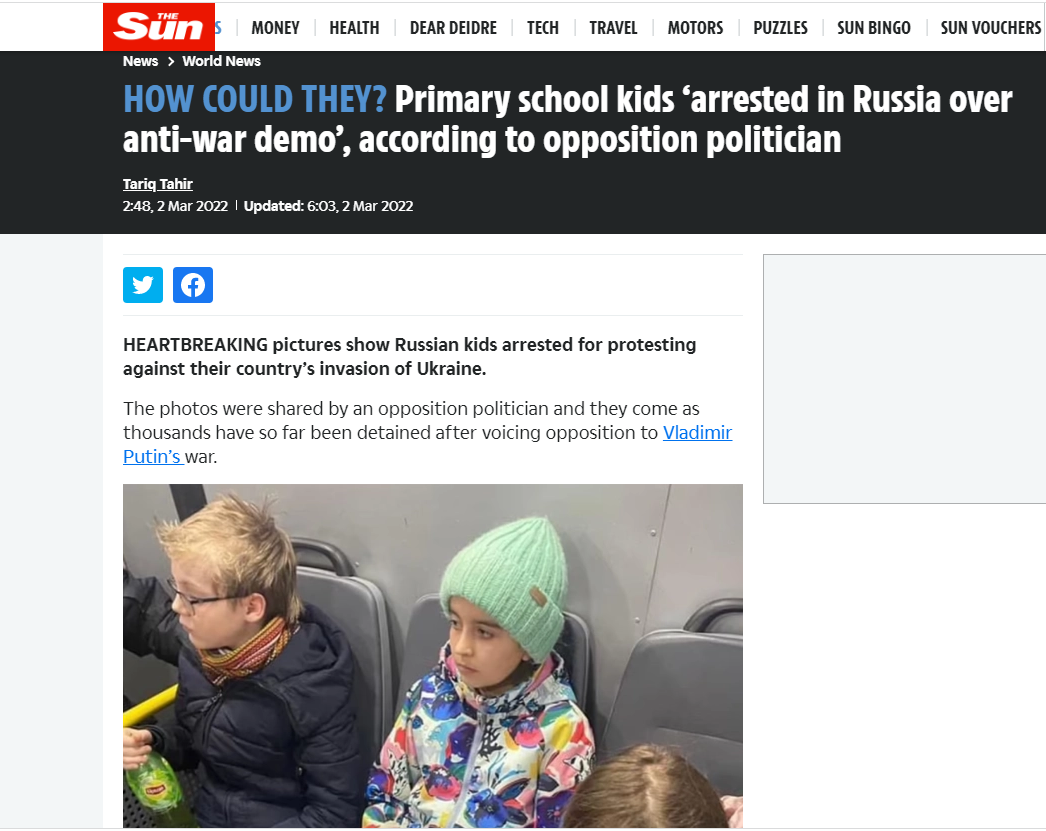Disa foto prekëse janë publikuar nga mediat e huaja, të cilat tregojnë fëmijët rusë të arrestuar për shkak se protestuan kundër pushtimit të Ukrainës nga vendi i tyre.