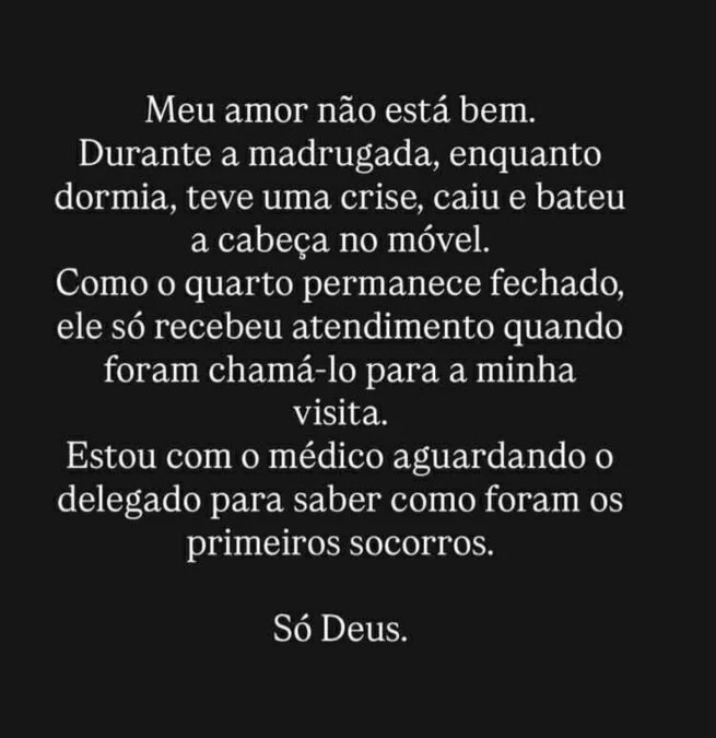 Siç raportoi ajo, Bolsonaro mori ndihmë mjekësore me vonesë, pasi dhoma në të cilën po mbahej ishte e mbyllur dhe ai u vu re vetëm kur mbërritën për vizitën e saj të planifikuar. Michelle Bolsonaro tha gjithashtu se është në kontakt të vazhdueshëm me mjekët dhe po pret informacion të plotë mbi mënyrën se si i është ofruar ndihma e parë dhe mbi gjendjen aktuale shëndetësore të ish-presidentit.