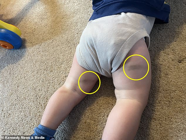 Por ndërsa ajo filloi të ngarkonte çantat e blerjeve në makinën e saj pasi pagoi, ajo pretendon se karroca u rrokullisdhe u rrëzua duke bërë që George të godiste kokën në trotuar. Fotot tronditëse tregojnë djalin të dëmtuar në kokë dhe me mavijosje në pjesën e prapme të këmbëve të tij.