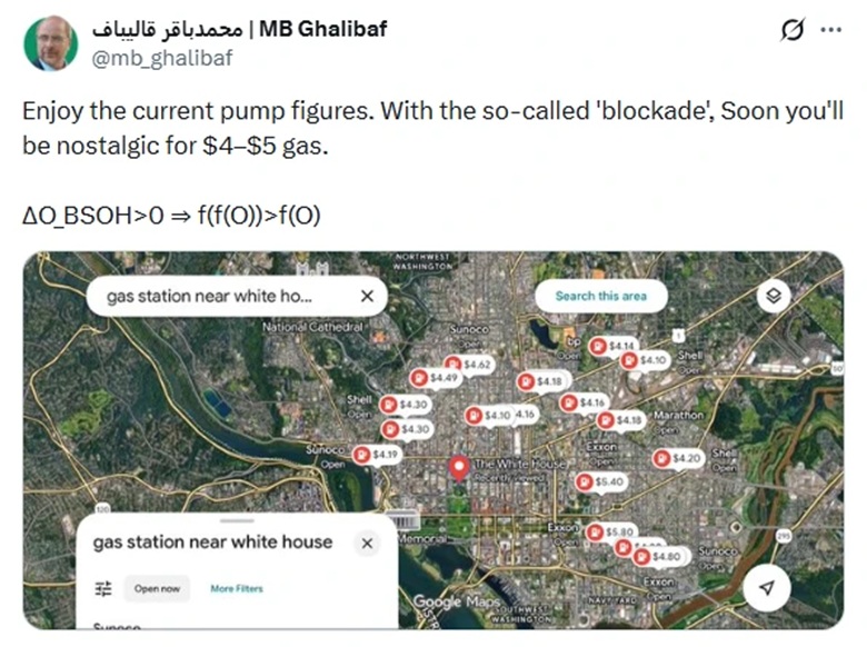 Mohammad Bagher Ghalibaf, kryetari i parlamentit iranian që udhëhoqi negociatat në Islamabad, ka ironizuar Donald Trumpin në një postim në X, duke iu referuar planeve të SHBA-ve për të bllokuar Ngushticën e Hormuzit.