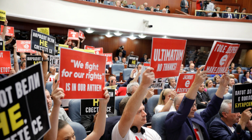 Por, deputetët e VMRO-DPMNE-së vazhdojnë me akuzat ndaj Qeverisë për “tradhti kombëtare” pasi, sipas tyre, “propozimi francez rrënon gjuhën dhe identitetin kombëtare maqedonas”.