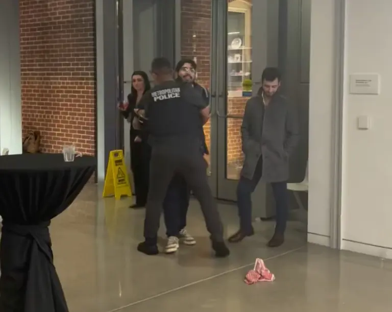 Pamjet e publikuara nga një dëshmitare në Instagram tregojnë momentin kur Rodriguez ndalohet nga një roje sigurie, i cili mbante një jelek të policisë. Më pas dy qytetarë iu bashkuan për ta mbajtur nën kontroll. Ndërsa i shoqëruar drejt daljes, ai brohoriste “Liri, liri Palestinë” përpara kamerës.