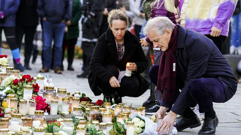 norvegjez, Jonas Gahr Støre duke vendosur lule e ndezur qirinj gjatë vizitës në Kongsberg