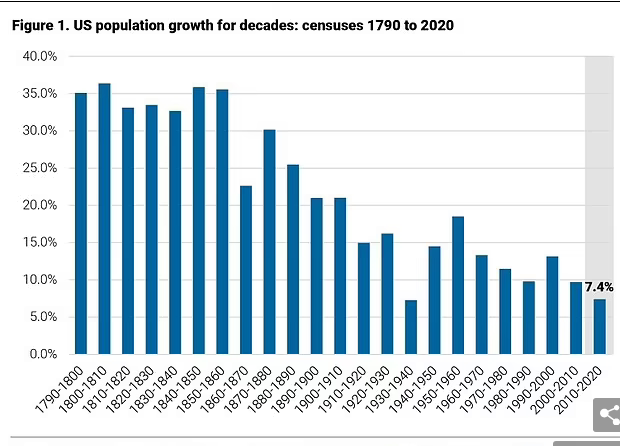 Në përgjithësi, shkalla e rritjes së popullsisë amerikane pa rritjen më të vogël vitin e kaluar, me vetëm 1.2 milion njerëz të rinj të raportuar në vitin 2020. Këtë vit, popullsia do të rritet vetëm me 0.2%, sipas një studimi të Oxford Economics