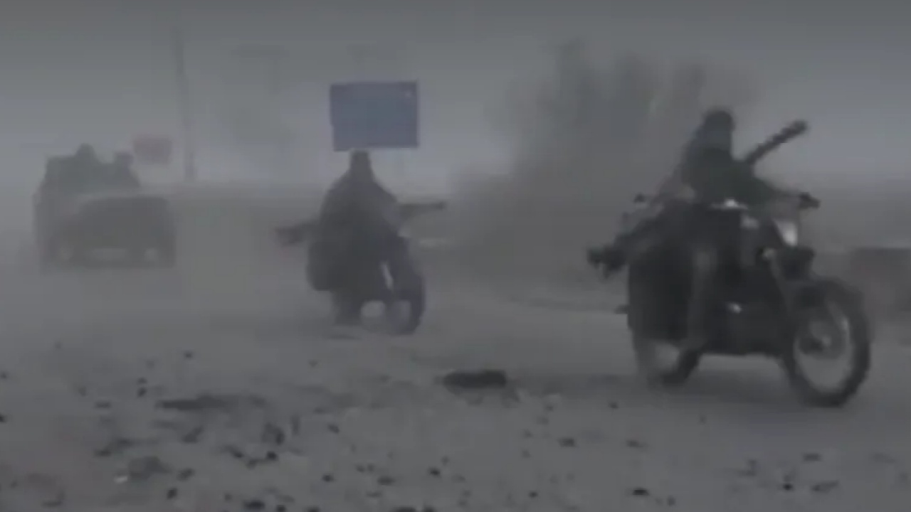 Pamje që ngjajnë me skena nga filmi “Mad Max” janë kapur në periferi të qytetit lindor ukrainas të Pokrovskut, ku ushtarë rusë shihen duke përparuar nën mbulesën e një mjegulle të dendur.