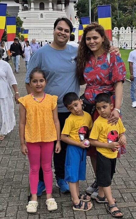 Fotografia e tregon Patrick dhe gruan e tij të ulur në njërën anë duke buzëqeshur dhe djemtë e tyre binjakë me vajzën e madhe të ulur në anën tjetër të avionit, gjithashtu me buzëqeshje të mëdha në fytyrat e tyre. Djemtë binjakë të çiftit, Nakul dhe Pradyut ishin pesë vjeç dhe vajza e tyre, Miraya, ishte tetë vjeçe.