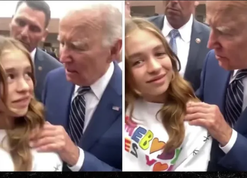 President Joe Biden grabs a young girl by the shoulder and tells her “no serious guys till your 30” as she looks back appearing uncomfortable, secret service appears to try to stop me from filming it after Biden spoke @ Irvine Valley Community College | @TPUSA @FrontlinesShow pic.twitter.com/BemRybWdBI