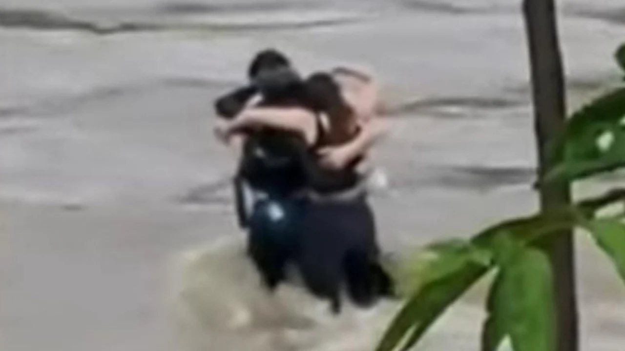 Tre shokë janë përqafuar me njëri-tjetrin përpara se të përfshiheshin nga përmbytjet në Itali.