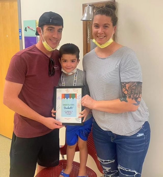Megjithatë, nëna e tij tani ka zbuluar se djali i saj është shëruar dhe është në shkollë. Një video e tregon atë duke i rënë kambanës në spital javën e kaluar për të shënuar një kapitull të ri në jetën e tij.