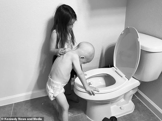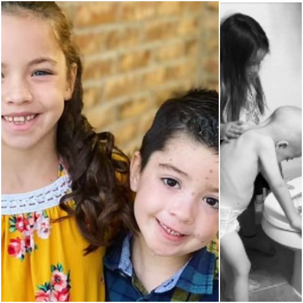 Në shtator 2019, Kaitlin Burge nga Princeton, Texas, postoi fotografi të djalit të saj Beckett, atëherë katër vjeç, duke u ngushëlluar nga motra e tij e madhe Aubrey, atëherë pesë vjeç, teksa villte mbi një tualet që vinte si pasojë e trajtimit me kimioterapi.