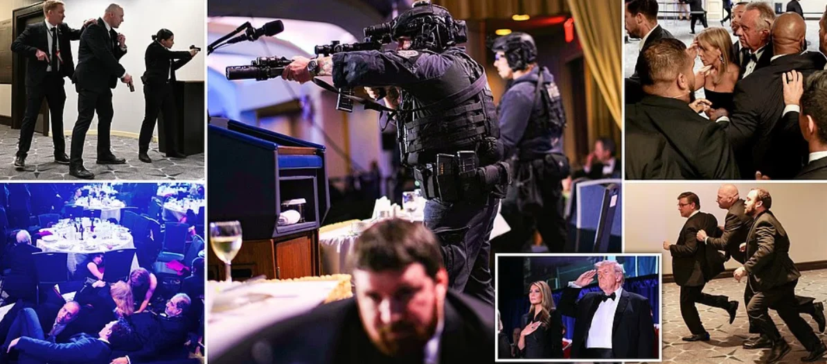 Shërbimi Sekret dhe autoritetet e tjera mbushën sallën e banketit në Washington Hilton, ndërsa qindra të ftuar që po hanin u fshehën poshtë tavolinave.