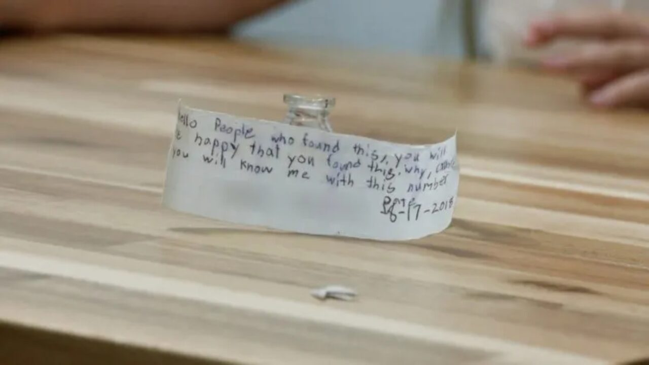 Ajo ia tregoi menjëherë nënës së saj, Paris Hoisington. Brenda shishes ndodhej një letër e datës 17 gusht 2018, me një mesazh të çuditshëm: “Për këdo që e gjen këtë. Do të gëzoheni që e keni gjetur. Pse? Sepse do të më njihni nga ky numër”. Në vend që të telefononte, Paris dërgoi një mesazh dhe u habit kur mori përgjigje nga një vajzë 21-vjeçare që jeton sot në Hawaii. Ajo kishte qenë vetëm 13 vjeçe kur, bashkë me vëllain e saj 8-vjeçar, hodhën shishen në det si pjesë e një eksperimenti fëmijëror.