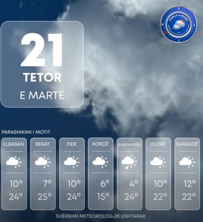 Ditën e martë vendi ynë do të ndikohet nga kushte atmosferike relativisht të qëndrueshme.