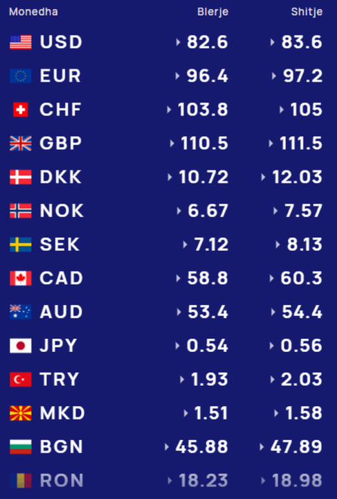 Më poshtë, po sjellim të dhënat e këmbimin valutor, për të gjitha monedhat e huaja: